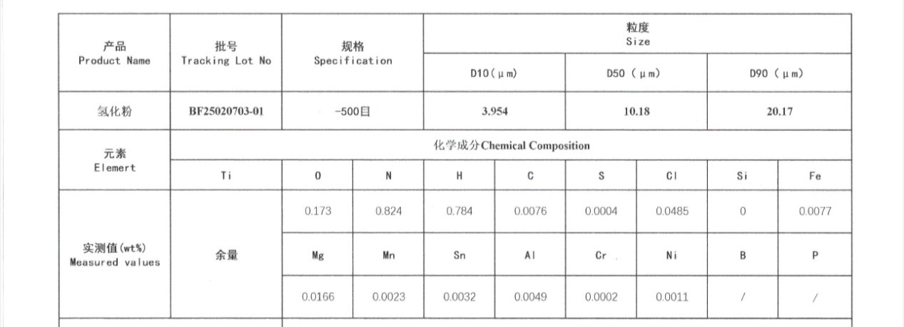 主要用途:用于粉末冶金与钛合金制备、航空航天紧固件、生物医用材料等原料
